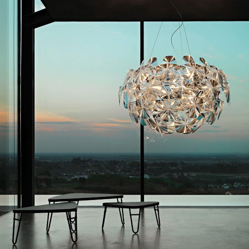 Incredibly light and easy to dismantle Hope revives the magic of traditional chandeliers reinterpreted with sophisticated modern technologies and contemporary materials. I samme serie finder du også gulvlampe pendel og væglampe. Loftslampen Hope kan helt sikkert betegnes som den moderne fortolkning af en krystallampe.